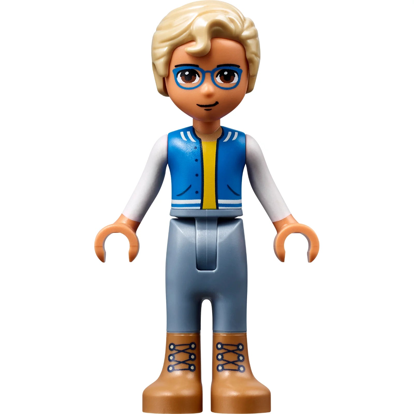 Minifig frnd502 - Friends Sebastian - Medium Nougat Boots, Sand Blue Trousers, Blue Vest with Pockets, Yellow Undershirt