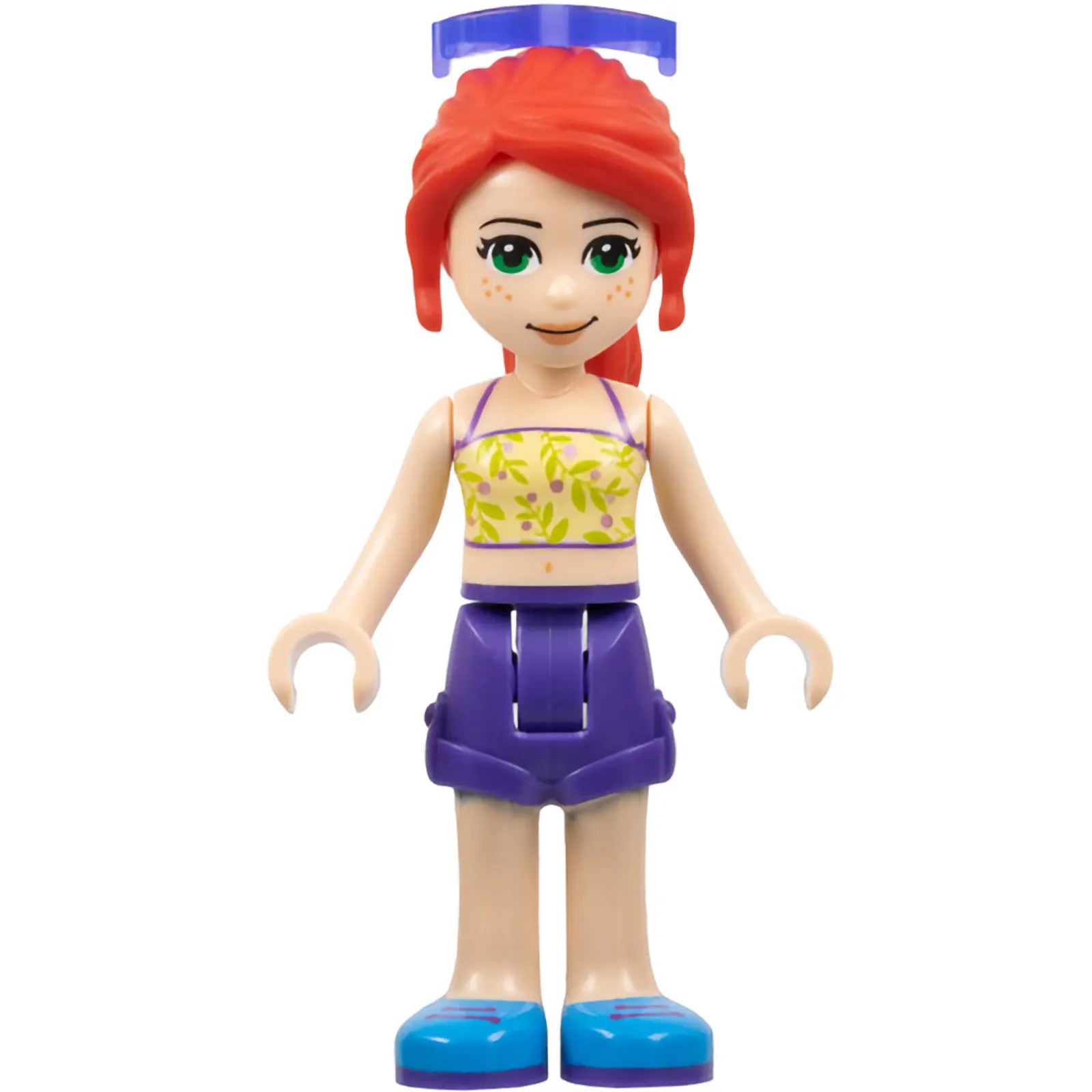 Minifigur frnd402 - Friends Mia - Dunkelviolette Shorts, gelblich-grünes Oberteil mit Ranken, Sonnenbrille