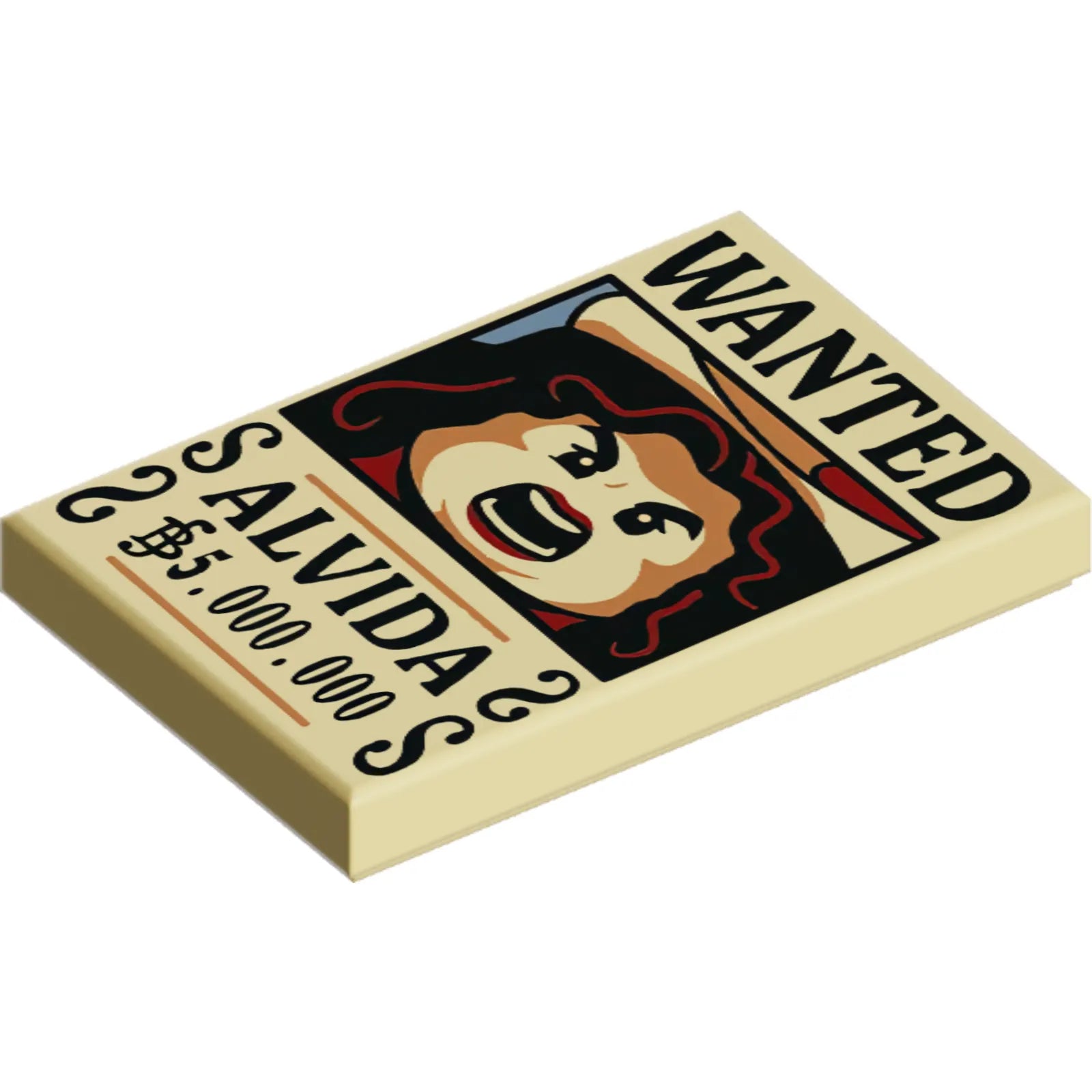 Part 26603pb534 - Tile 2 x 3 with Wanted Poster with Black 'WANTED' 'ALVIDA' (Belly) '5.000.000' Pattern