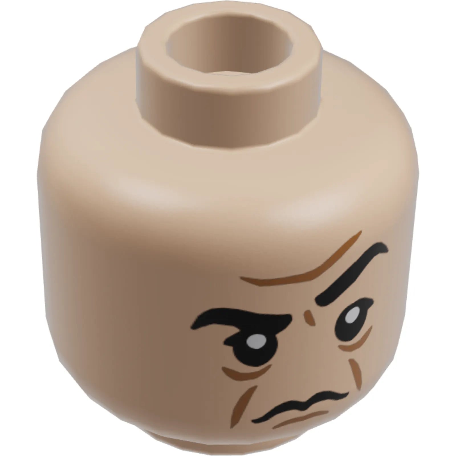 Part 3626cpb2236 - Minifigure, Head Dual Sided Black Eyebrows, Medium Nougat Furrowed Brow, Chin Dimple, and Jowl Lines, Frown with Raised Eyebrow / Angry Open Mouth Scowl with Teeth Pattern - Hollow Stud