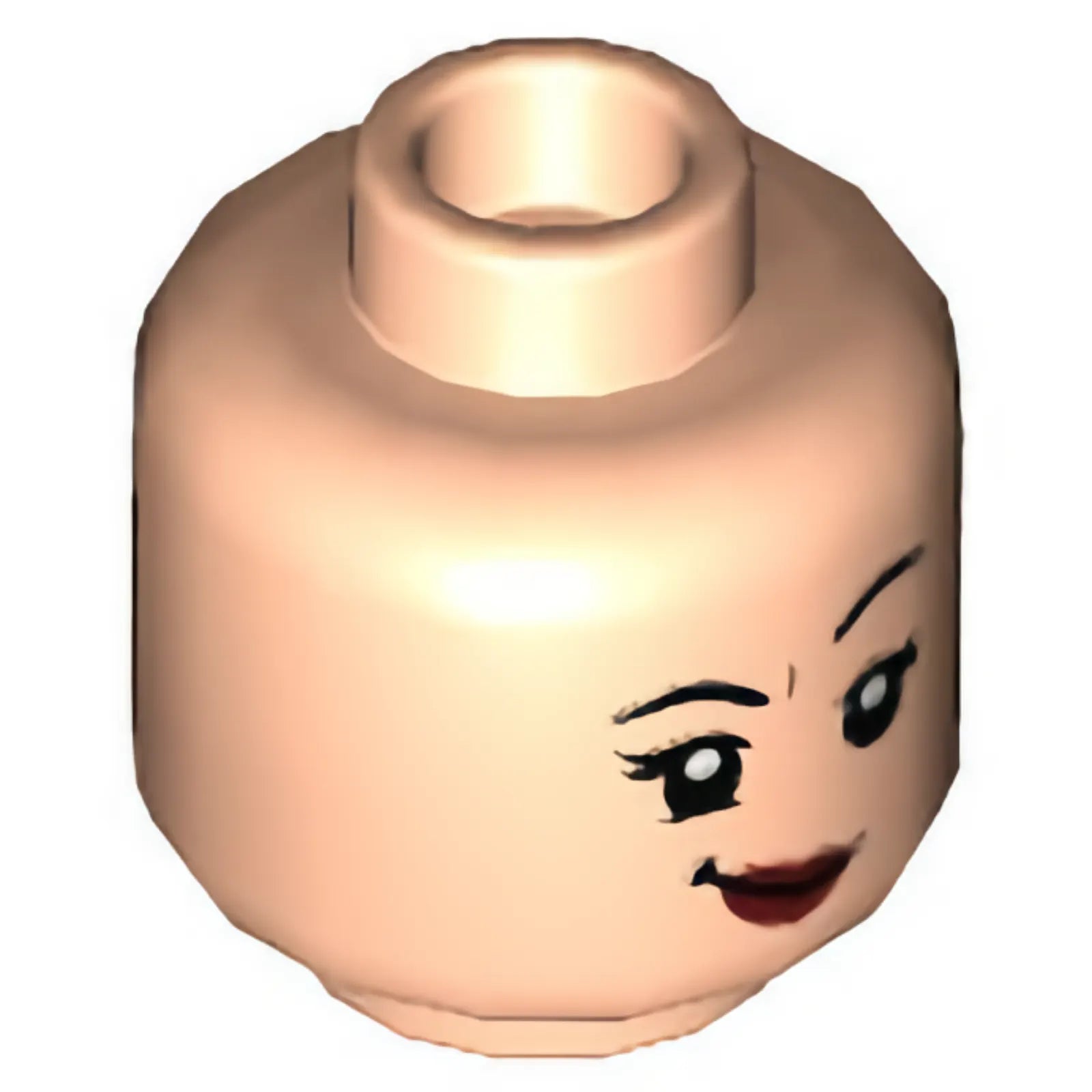 Part 3626cpb3106 - Minifigure, Head Dual Sided Female, Black Eyebrows, Lopsided Grin with Dark Red Lips / Bright Light Orange Goose Duck Bill Pattern - Hollow Stud