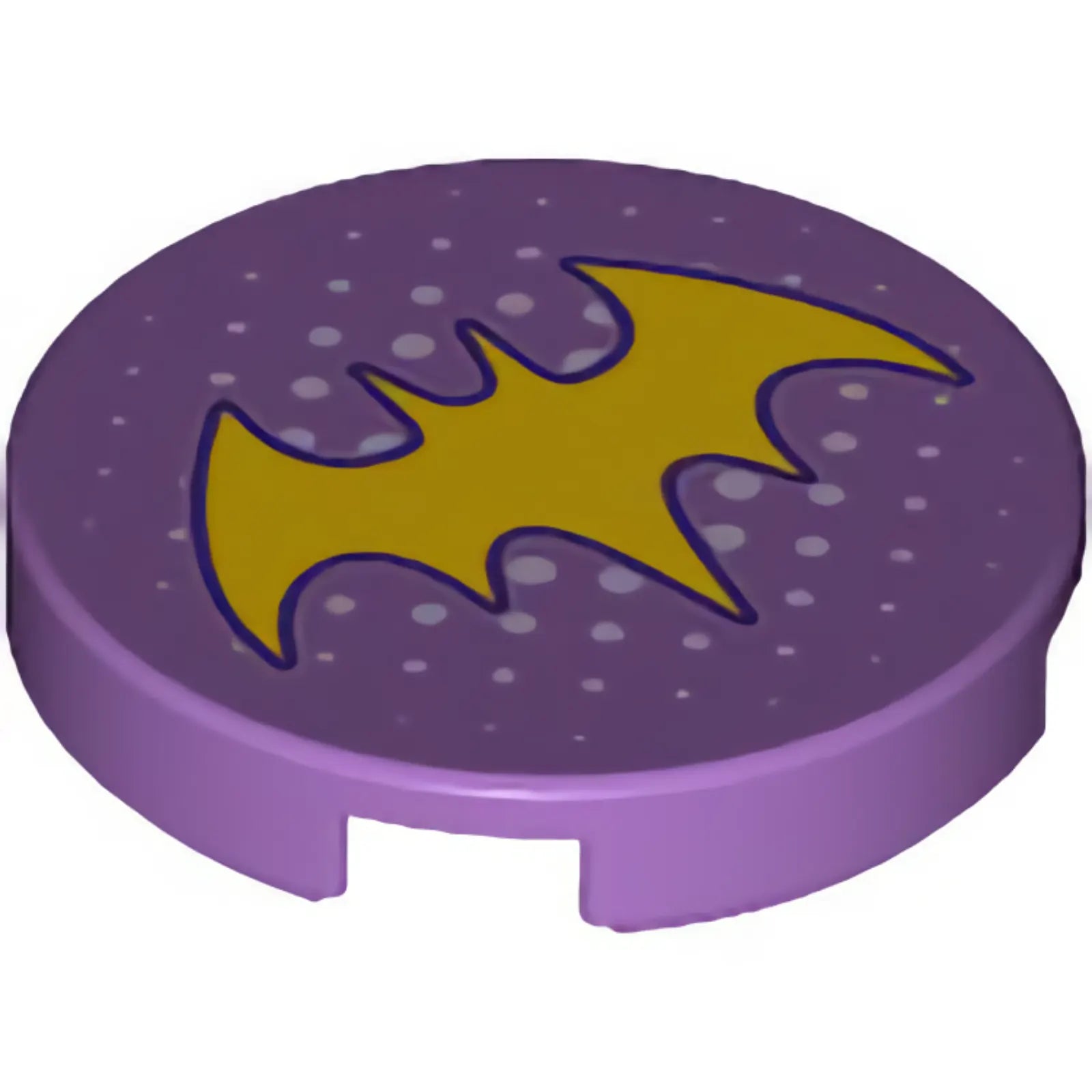 Part 14769pb192 - Tile, Round 2 x 2 with Bottom Stud Holder with Yellow Bat Symbol and Small White Dots Pattern