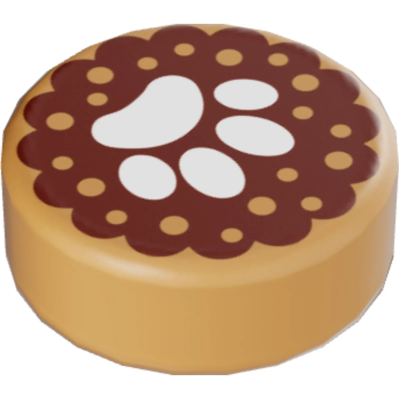 Part 98138pb055 - Tile, Round 1 x 1 with White Animal Paw Print on Reddish Brown Background Pattern