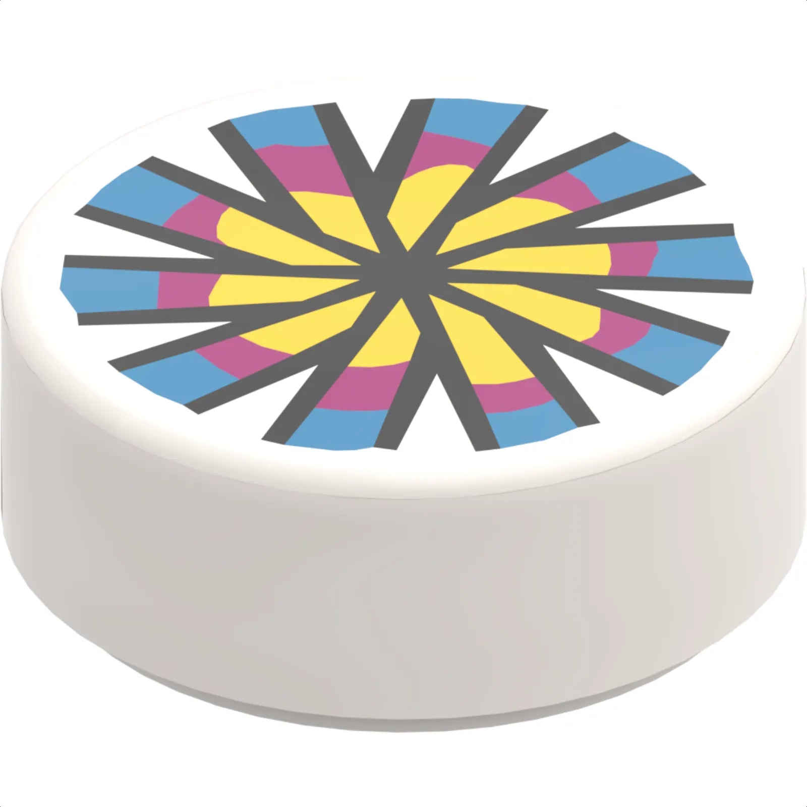 Part 98138pb119 - Tile, Round 1 x 1 with Yellow, Magenta and Dark Azure Flower and Chinese Pellet Drum Pattern