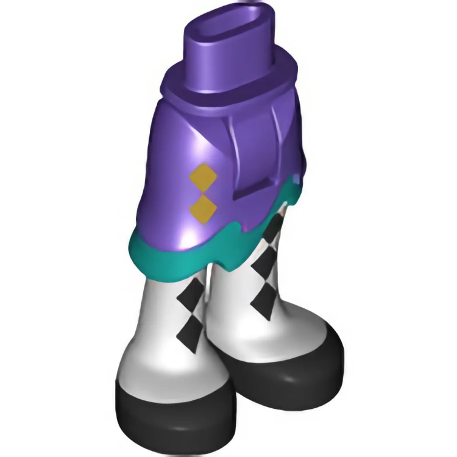 Part 20380c00pb07 - Mini Doll Hips and Asymmetric Layered Skirt Short, Dark Turquoise Ruffle, White Leggings with Black Diamonds and Shoes Pattern - Thick Hinge