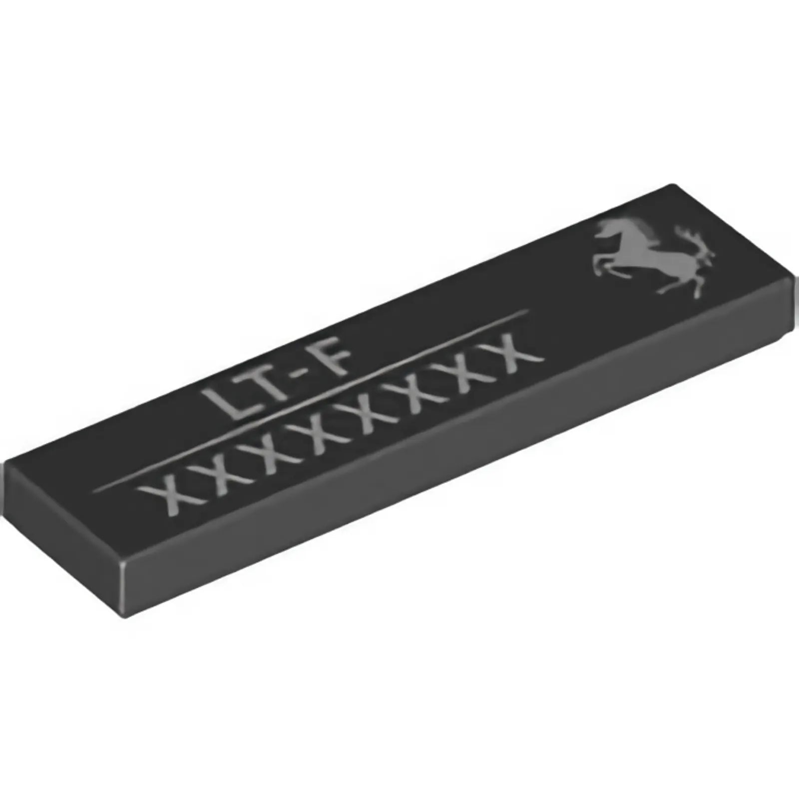Part 2431pb800 - Tile 1 x 4 with Ferrari Logo White Horse, 'LT-F' and 8-digit Serial Number Pattern